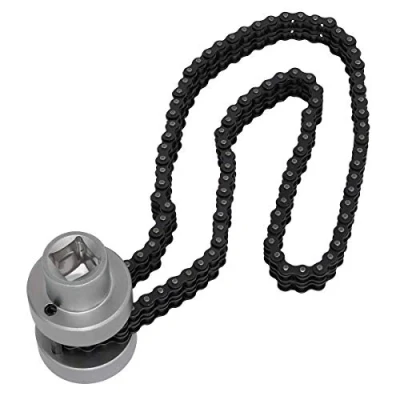 ManoManoGeneral description Sleek and durable, the Sealey VS937 Oil Filter Chain Wrench is designed for efficient oil filter removal. It features a satin finished carbon steel body and a 1/2" square drive, making it compatible with ratchet wrenches. The heavy-duty thin double chain ensures a secure grip on filters ranging from 60mm to 115mm in diameter. Technical specifications Material: Satin finished carbon steel Drive: 1/2" Sq Capacity: Ø60-115mm Model No.: VS937