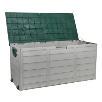 ManoManoGeneral description Sealey Outdoor Storage Box is designed for durability and convenience, manufactured from heavy-duty polypropylene. This maintenance-free and fully weatherproof storage solution is ideal for various domestic applications, including garden tool and furniture storage. It features a hinged lid that can be padlocked for added security, two carry handles, closed ventilation, and two integral wheels on the base for easy maneuverability. The box is supplied flat-packed and can be easily assembled without the need for tools. Technical specifications External Size (W x D x H): 1120 x 460 x 540mm Internal Size (W x D x H): 1100 x 450 x 500mm Weight: 8kg Model No.: SBSC01 EAN: 5051747736559 Other information