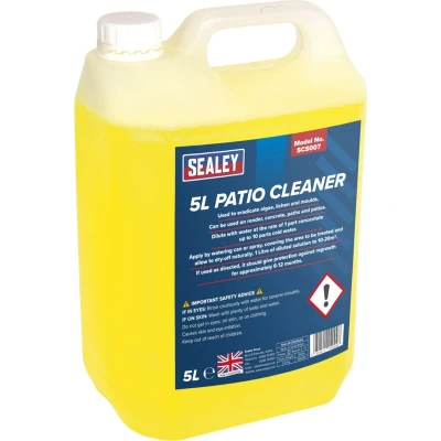 ManoManoGeneral description Sealey Patio Cleaner 5L is a non-corrosive, chlorine-free concentrated cleaner designed for the safe and effective removal of algae, moss, and fungi from various hard surfaces including walls, paths, roofs, and patios. Technical specifications Model No.: SCS007 Size: 5L Non-corrosive and chlorine-free Usage Effective for cleaning floors, walls, and other hard surfaces. Loosens dirt for easier cleaning. Can be used with pressure washers for enhanced cleaning power. Other information