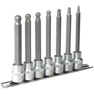 Sealey Premier Ball End Hex Socket Bit Set 7pc Metric 3/8"Sq Drive 100mm