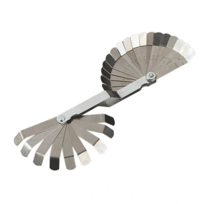 ManoManoGeneral description Sealey Premier Dual Marked Offset Feeler Gauge features a 26 blade design that is graduated in Imperial measurements. This tool is essential for checking tolerances on overhead camshaft (OHC) configurations and is suitable for applications where straight blades cannot reach. Technical specifications Blade dimensions: 75 x 13mm (45º-15mm offset) Sizes: 0.005" to 0.030" Model No.: VS515 EAN: 5024209351751 Other information