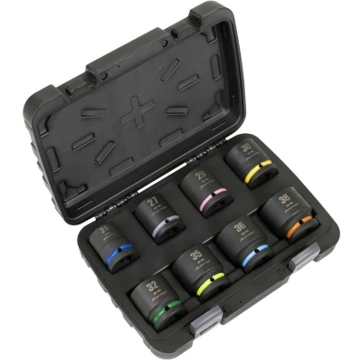 Manufactured from hardened and tempered Chrome Molybdenum steel with a phosphate finish for added corrosion resistance. 6-Point WallDrive® sockets allow a transfer of up to 30% more torque to the fixing. Colour-coded rings and enlarged socket size text for fast identification. Supplied in storage case. SEALEY PREMIER - One of a comprehensive range of Premier Hand Tools suitable for daily, professional use. HARDENED AND TEMPERED CHROME MOLYBDENUM STEEL - For strength and durability. IMPACT GRADE - Suitable for use with any impact tool. PHOSPHATE FINISH - For added corrosion resistance. 6-POINT WALLDRIVE® SOCKETS - Allow up to 30% more torque to the fixing. COLOUR-CODED WITH ENLARGED SOCKET SIZE PRINT - For quick and easy identification. COMPREHENSIVE 8PC SET - Standard Sockets; 24, 27, 29, 30, 32, 35, 36, 38mm. SUPPLIED IN STORAGE CASE - For easy storage solutions. LIFETIME GUARANTEE*.