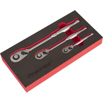 Sealey Premier Platinum 3pc Ratchet Wrench Set Flip Reverse, EVA Foam Storage Tray AK7933