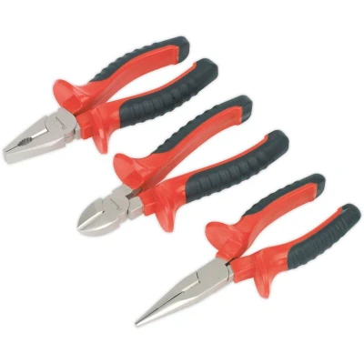 ManoManoGeneral description Sealey Premier Pliers Set includes three essential tools: 175mm Combination Pliers, 160mm Side Cutters, and 215mm Long Nose Pliers. Made from drop-forged Chrome Vanadium steel with a Ti-Chrome finish, these pliers are designed for improved durability and are suitable for daily professional use. Technical specifications Model No.: AK8521 Nett Weight: 0.66 kg Contents: 175mm Combination Pliers, 160mm Side Cutters, 215mm Long Nose Pliers Usage Dual material handles with anti-slip guard for enhanced comfort and control during use. Other information