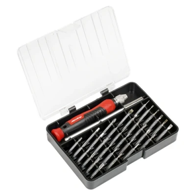 The Sealey Premier Precision Bit Screwdriver Set is a comprehensive 32-piece toolkit designed for professional and everyday use. Crafted from high-quality S2 steel and finished with a chrome plating, this set offers increased protection against corrosion and wear, ensuring durability and longevity.