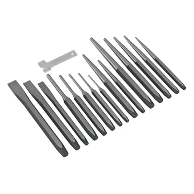 The Sealey Premier Punch & Chisel Set (Model No. AK9216) is an essential toolset for both professional tradespeople and DIY enthusiasts alike. This comprehensive 16-piece set is crafted from high-quality Chrome Vanadium steel, known for its excellent strength and durability. Each piece is hardened and tempered, ensuring that they withstand heavy usage without compromising on performance.