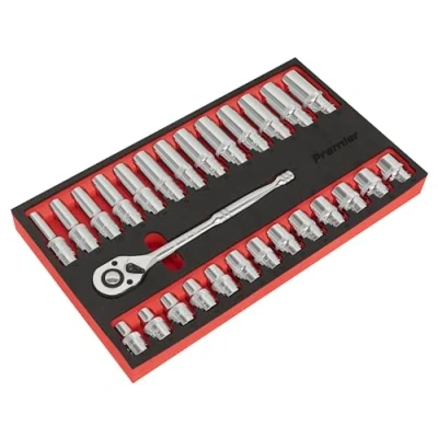 The entire socket set is conveniently supplied in a robust EVA storage tray, ensuring that your tools remain organized and easy to access. This storage solution protects your tools from damage and allows for quick identification of the right sockets, saving you time and effort in your projects.