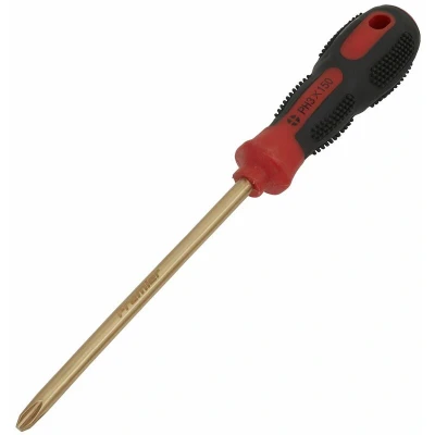 ManoManoGeneral description Sealey Screwdriver Phillips 3 x 150mm is part of a comprehensive range of Non-Sparking Safety Tools, designed for daily professional use in potentially explosive environments. This screwdriver is manufactured from Beryllium Copper and is die forged, ensuring durability and safety. Technical specifications Manufacturer Part Number: NS098 Size: #3 x 150mm Type: Phillips Usage Intended for use in environments where accidental sparks can be created if regular steel tools are used. Ergonomic design with contoured handles and soft grip maximizes comfort and control during use. Other information Lifetime guarantee* Hanging hole for safe storage.