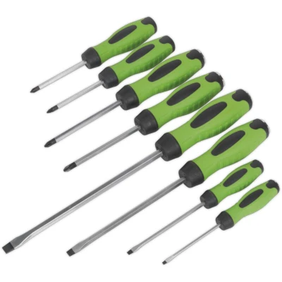 Sealey Premier Screwdriver Set 8pc Hammer Thru Hi Vis Green