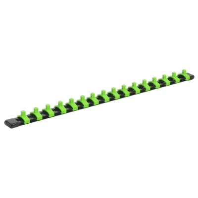 Sealey Premier Socket Retaining Rail with 16 Clips 1/4"Sq Drive Hi Vis Green