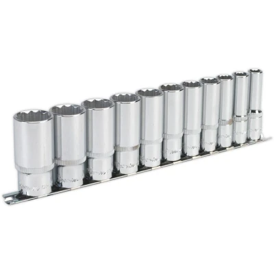 Sealey Premier Socket Set 11pc 3/8"Sq Drive 12pt Deep WallDrive® Imperial