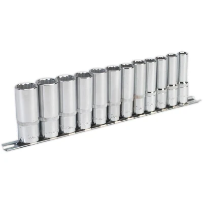 Sealey Premier Socket Set 12pc 3/8"Sq Drive 12pt Deep WallDrive® Metric