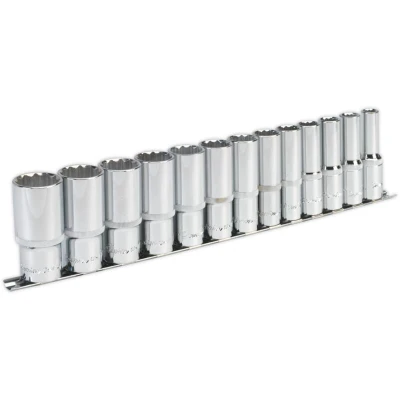 Sealey Premier Socket Set 13pc 1/2"Sq Drive 12pt Deep WallDrive® Imperial