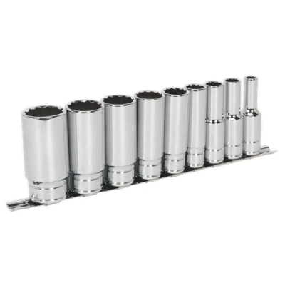 Sealey Premier Socket Set 9pc 1/2"Sq Drive Deep Whitworth