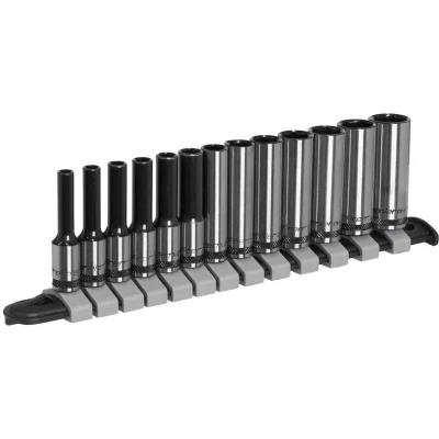 The socket set comprises an array of sizes, ensuring that you have the right tool for various tasks. The set includes 4mm, 4.5mm, 5mm, 5.5mm, 6mm, 7mm, 8mm, 9mm, 10mm, 11mm, 12mm, 13mm, and 14mm sockets, accommodating a wide range of applications. All sockets are conveniently supplied on a socket rail, facilitating easy storage and accessibility while keeping your workspace organized.
