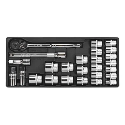 These tool trays have been meticulously crafted to support the demands of professional work. They include a selection of high-quality tools from our Premier Line, ensuring durability and performance. The contents of the trays feature an extensive array of sockets in sizes ranging from 10mm to 32mm, alongside a 1/2" square drive flip reverse ratchet wrench and extension bars measuring 75mm and 200mm. Additionally, special spark plug sockets of 16mm and 21mm ensure you're equipped for a wide variety of tasks.
