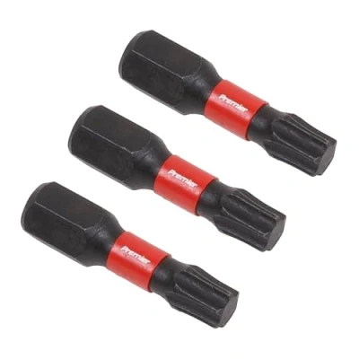 • One of a comprehensive range of Premier Hand Tools, suitable for daily professional use.• Impact grade power tool bits for the professional user.• Forged from high quality S2 steel.• Specially heat treated CNC precision machined tips reduce stress and prevent cam-out under load.• Torsion bits absorb impact and transfer maximum torque to the fixing.• Lifetime guarantee*.Impact grade power tool bits for the professional user. Forged from high quality S2 steel. Specially heat treated CNC precision machined tips reduce stress and prevent cam-out under load. Torsion bits absorb impact and transfer maximum torque to the fixing.Technical Specification:Length: 25mmNett Weight: 0.020kgPack Qty: 3pcsType: TRX-Star*Dimensions: Length: 100mm x Height: 70mmWeight: 0.015KgWarranty: Life