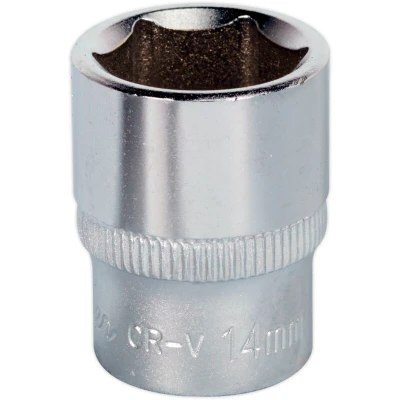 ManoManoGeneral description Sealey WallDrive Socket 14mm 1/4" Square Drive is a high-quality tool designed for durability and performance. Made from cold-forged Chrome Vanadium steel, this socket is hardened and tempered for added strength. Its unique WallDrive socket configuration allows for better grip and torque transfer, making it ideal for professional use. Technical specifications Material: Chrome Vanadium Model No.: S1414 Finish: Half chrome, half satin Size: 14mm Drive Type: 1/4" Square Drive Other information Lifetime guarantee*