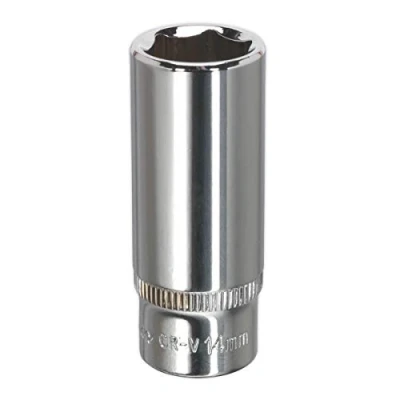 ManoManoGeneral description Sealey WallDrive Socket 14mm Deep 1/4" Square Drive is designed for durability and efficiency. Made from cold-forged Chrome Vanadium steel, this socket is hardened and tempered for added strength. It features a fully polished mirror finish and a WallDrive socket configuration, ensuring a secure fit and ease of use, even with oily fingers thanks to its knurled ring. Technical specifications Material: Chrome Vanadium MPN: SP1414D EAN: 5051747361041 Other information Lifetime guarantee*