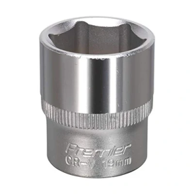 ManoManoGeneral description Sealey S3819 Premier Socket is a high-quality 3/8" square drive socket designed for professional use. Made from cold-forged Chrome Vanadium steel, this socket is both durable and reliable, making it suitable for daily tasks in various applications. Technical specifications Material: Cold-forged Chrome Vanadium steel Drive Size: 3/8in Socket Size: 19mm Model No.: S3819 EAN: 5024209335737 Depth: Standard Drive Type: 3/8"Sq Other information Lifetime guarantee* Features a chrome plated half chrome, half satin finish with a knurled ring for extra grip, even with oily fingers. WallDrive® socket configuration for improved performance.