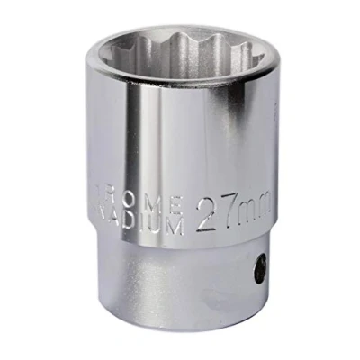• One of a comprehensive range of Premier Hand Tools, suitable for daily professional use.• Forged Chrome Vanadium steel sockets.• Hardened and tempered for added strength.• Finished in high chrome for corrosion resistance.• WallDrive® socket configuration.• Lifetime guarantee*.Forged Chrome Vanadium steel socket, hardened and tempered for added strength. Finished in high chrome for corrosion resistance. WallDrive® socket configuration.• Forged Chrome Vanadium steel socket. • Hardened and tempered for added strength. • Finished in high chrome for corrosion resistance. • Lifetime guarantee*. • Model No. S34/27Technical Specification:Depth: StandardDrive: 3/4"SqMaterial: Chrome VanadiumNett Weight: 0.18kgSize: 27mmDimensions: Length: 37mm x Height: 124mmWeight: 0.215KgWarranty: Life