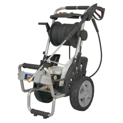 Equipped with a powerful 2500W induction motor, the Sealey Pressure Washer features a brass pump head and fittings with ceramic pistons. It is capable of pumping up to 498 litres of water per hour, delivering an impressive maximum pressure of 150 bar (2200 psi). This allows for efficient and effective cleaning of even the toughest dirt and grime.