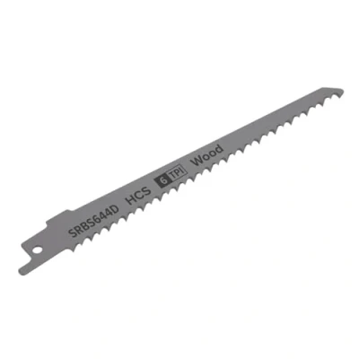 ManoManoGeneral description Sealey SRBS644D Reciprocating Saw Blade for Clean Wood is designed for efficient cutting through various types of wood. This pack includes 5 blades, each measuring 150mm with a 6 teeth per inch (tpi) configuration, making them ideal for quick and effective cuts. Technical specifications Blade Type: HCS (High Carbon Steel) Length: 150mm Teeth per Inch (TPI): 6 Model No.: SRBS644D Pack Quantity: 5 EAN: 5054511806632 Compatibility and accessories Compatible with most popular brands of reciprocating saws. Usage Suitable for cutting through wood, including plywood, chipboard, plasterboard, plastics, and window frames. Ground and side set teeth allow for relatively rough and efficient cuts. Other information