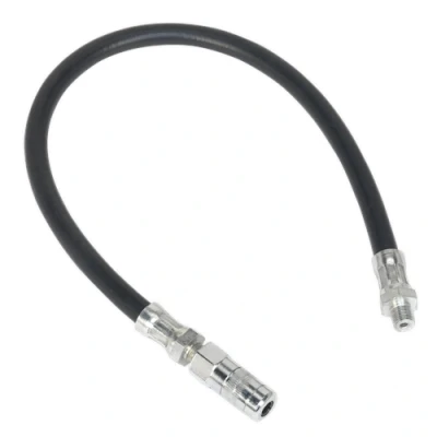 ManoManoGeneral description Sealey Flexible Rubber Grease Gun Delivery Hose with 4-Jaw Connector is designed for manual grease guns, providing flexibility and ease of use. It is not suitable for air-operated grease guns. Technical specifications Length: 450mm Thread Size: 1/8" BSP Burst Pressure: 10,000 psi Nett Weight: 0.12kg Fitted with zinc plated male ends Other information