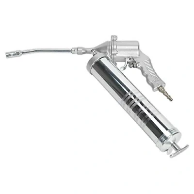 AmazonFeatures:Die-cast head and body with chromed steel grease tube Includes rigid extension tube and 4-jaw coupler Trigger operated continuous flow gun with 3-way fill and air-bleed valve Accepts 400g grease cartridges, bulk or manual fill Specifications:Model No: SA401Operating Pressure: 60-150psiDelivery Pressure: 1200-5000psiAir Inlet: 1/4"BSPOptional 300mm Flexible Delivery Tube: GGHE300Height: 67Width: 412Length: 171