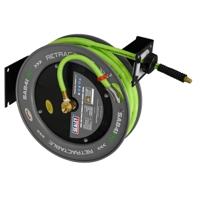 Sealey Sa841Hv Retractable Air Hose Metal Reel 15Mtr 10Mm Id Hi Vis Tpr
