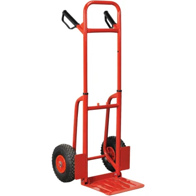 • Extra-strong tubular steel framework.• Fitted with air filled pneumatic tyres.• Perfect for absorbing impact, which is ideal for use on uneven surfaces and rough terrain.• Features foldaway toe plate and height-adjustable handles.• Fitted with composite grip handles for added comfort and stability.Extra-strong tubular steel framework with heavy-duty pneumatic tyres allow transport of load over rough terrain. Features foldaway toe plate and height-adjustable handles. Fitted with composite grip handles for added comfort and stability.• Extra-strong tubular steel framework. • Fitted with air filled pneumatic tyres. • Perfect for absorbing impact, which is ideal for use on uneven surfaces and rough terrain. • Features foldaway toe plate and height-adjustable handles. • Fitted with composite grip handles for added comfort and stability. • Model No. CST801Technical Specification:Capacity: 200kgHeight(s): 810-1165mmNett Weight: 10.06kgOverall Width: 480mmPlatform Depth: 290mmWheel Size: ø250mmWheel Width: 80mmDimensions: Length: 240mm x Height: 800mmWeight: 11.04KgWarranty: 1 year