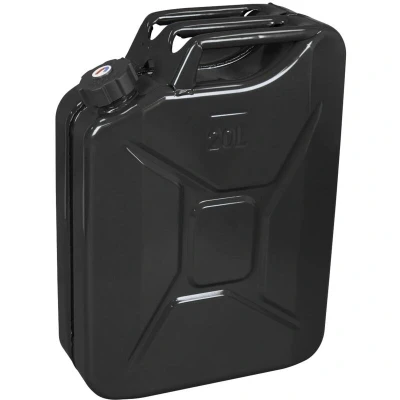 General description Anodized aluminium screw cap with an incorporated magnet, designed for high durability and safety. This 20L black metal jerry can features a robust 0.9mm body thickness, making it ideal for storing diesel fuel. Technical specifications Capacity: 20L Body thickness: 0.9mm Color: Black (coded for diesel) Other information Manufactured and tested to comply with UN Dangerous Goods and DIN standards. Fuel resistant internal coating and fuel resistant rubber O-ring. Large opening neck and wide breathing channel for easy filling.