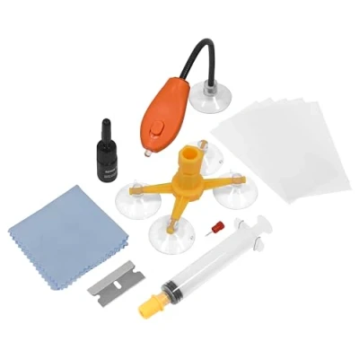 ManoManoGeneral description Simple step-by-step process suitable for repairing windscreen chips and small cracks. The tough resin formula fills the damaged area to prevent spreading, avoiding costly windscreen replacement. This kit includes a UV light for rapid curing. Technical specifications Contents: Push Pin Cleaning Cloth Repair Pedestal Razor Blade Repair Resin Injector Syringe UV Light Curing Film (x5) Instruction Manual