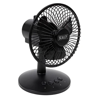OSCILLATION - Oscillation control switch and pivot head allow the user to control how the airflow is distributed. BRUSHLESS MOTOR – Brushless motor keeps the fan quiet, making it ideal for office environments. SPEED SETTINGS - 3-Speed settings. POWER - Supplied with a USB cable for powering via a laptop or mobile power bank. Can also be powered by 3 x AA batteries (not included) making it perfect as a portable fan., Weight: 1.3337966851 pounds, Manufacturer: Sealey