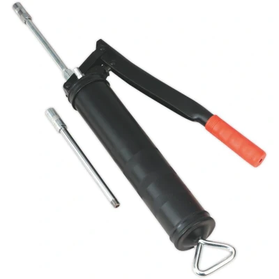 ManoManoGeneral description Sealey AK445 3-Way Fill Manual Grease Gun is designed for versatility with its 3-way fill capability, allowing for cartridge, bulk, or manual filling. It is equipped with a rigid delivery tube and a push-on hydraulic 4-jaw coupling for efficient operation. Technical specifications Model No.: AK445 Filling options: Cartridge, bulk, or manual Accepts standard 400g cartridges Optional 300mm Flexible Delivery Tube (Model No. GGH300 or GGHE300)