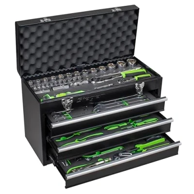 AmazonSealey by Sealley - Part of the Sealey range of quality tools at competitive prices. COMPREHENSIVE SET - Portable 3 drawer tool box with 98 piece tool kit including 1/4" and 1/2" sockets, ratchets and accessories. Sturdy metal case: robust metal tool box with carry handle for transport. (Toolbox W x D x H: 510 x 225 x 320 mm) EVA foam storage trays - for easy storage and selection of tools. Tray Dimensions (W x D x H): 445 x 200 x 30 mm LIFETIME WARRANTY FROM A REPUBLISHED UK COMPANY - Established in 1978, Sealey is a large family business with a wide range of products. Trusted by professionals, all Sealey products are thoroughly tested and backed by an unparalleled after-sales service.