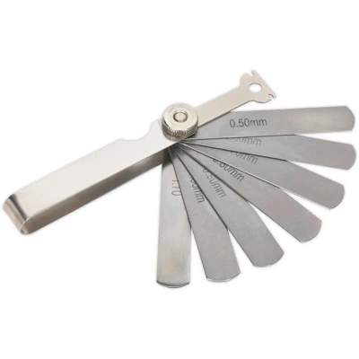 ManoManoGeneral description Specially designed for gapping spark plugs, the Sealey Spark Plug Feeler Gauge - Metric VS518 is suitable for both traditional copper and precious metal plugs. It features an electrode adjuster that allows for adjustments without risking damage to the core. Technical specifications Model No.: VS518 Blade dimensions: 75 x 13 mm EAN: 5051747980396 Other information