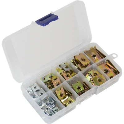 AmazonEASY TO INSTALL - Push fit spire nuts are simple to install to a panel. MULTIPURPOSE - Used to hold trim panels, bumpers, undertrays and more. STORAGE CASE - Supplied in an easy-access partitioned storage case. CONTENTS - (Approximate Quantity): No. 4 (x20), No. 6 (x16), No. 8 (x16), No. 10 (x14), No. 12 (x8)., Weight: 22.0462262 Pounds, Manufacturer: Sealey