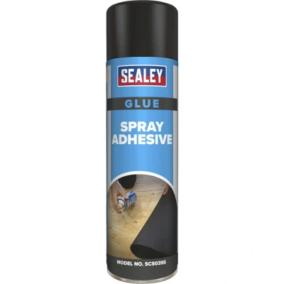 ManoManoGeneral description Sealey Spray Adhesive 500ml is designed to repair and maintain various types of substrates and trim. It is excellent for use on roof and trim lining, upholstery, and backed carpet, making it a versatile choice for various applications. Technical specifications Model No.: SCS039S Size: 500ml EAN: 5054511075113 Usage Suitable for bonding a wide range of materials, including: Paper Card Fabric Foam Metals Ceramics Glass Wood Other information