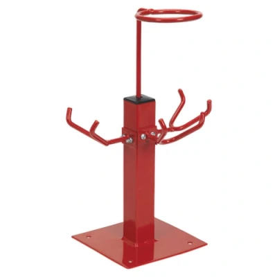 General description Sealey Spray Gun & Filter Holder is a heavy-duty triple gun stand designed for efficiency and convenience. Constructed from durable steel with a painted finish, it is suitable for use with most gravity feed spray guns, making it an essential tool for any DIY or professional project. Technical specifications Model No.: SH03 Nett Weight: 1.28 kg Capacity: Up to three gravity feed spray guns Hook Width: 60 mm Compatibility and accessories Compatible with most gravity feed spray guns Installation Easy to set up; simply place the spray guns on the hooks and adjust the filter ring as needed. Usage Ideal for holding multiple spray guns securely while allowing for easy access and pot filling. The adjustable filter ring simplifies the pot filling process, ensuring a cleaner operation. Other information