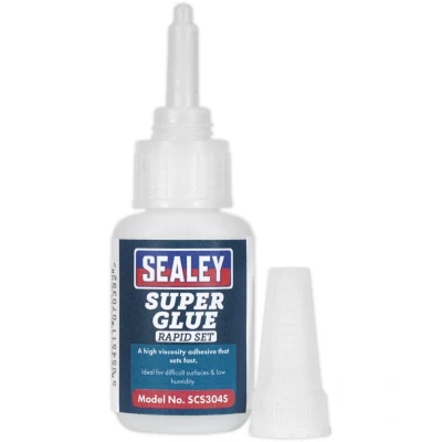 General description A high viscosity adhesive that sets fast, the Sealey SCS304S Rapid Set Super Glue is designed to bond materials such as metal, rubber, plastics, and wood in seconds. Technical specifications Model No.: SCS304S Viscosity: High