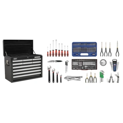 Sealey Superline Pro Topchest 10 Drawer with Ball Bearing Slides Black & 140pc Tool Kit