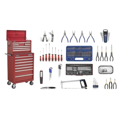 Sealey Superline Pro Topchest & Rollcab Combination 15 Drawer with Ball Bearing Slides Red 147pc Tool Kit