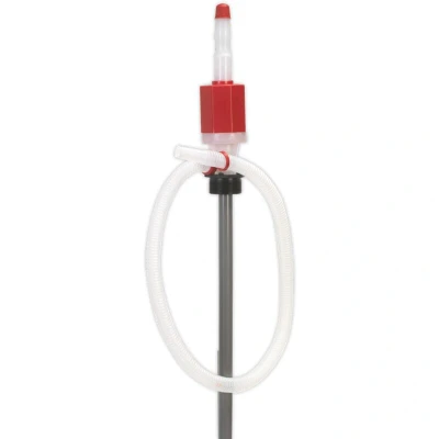 ManoManoGeneral description Sealey High Flow Syphon Pump for 205L Drum is an easy-to-use polyethylene pump featuring a self-priming mechanism. It is designed for efficient transfer of oils and non-aggressive chemicals, making it a versatile tool for various applications. Technical specifications Model No.: TP781 Nett Weight: 0.44 kg Flow Rate: Approximately 21 L/min Compatibility and accessories Suitable for use with 205L drums Other information