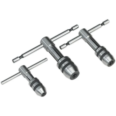 ManoManoGeneral description General-purpose tap wrenches for tapping and reaming, designed for versatility and ease of use. The set includes three different sizes to accommodate various tapping needs. Technical specifications Model No.: AK9799 Maximum Square Size: Small Wrench - 3.9mm Medium Wrench - 5mm Large Wrench - 7mm EAN: 5024209629072 Other information