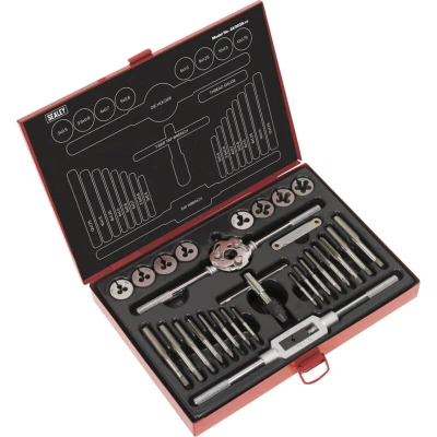 The Sealey Metric Tap & Die Set is an essential tool for anyone undertaking threading jobs, whether in a professional workshop or a home garage. Crafted from high-quality alloy steel, this 28-piece set provides reliable and durable components designed to meet the demands of various threading applications.