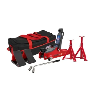 Sealey Trolley Jack 2 Tonne Low Entry Short Chassis & Accessories Bag Combo Red
