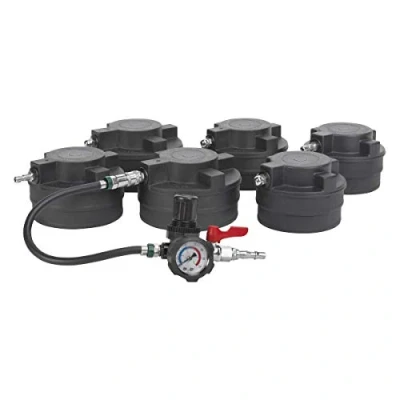 - User-Friendly Design: Featuring a built-in pressure gauge, the kit allows users to easily monitor pressure levels during testing. The inclusion of a shut-off valve facilitates easy control of air flow, while the pressure release valve ensures quick and safe depressurization after testing. Together, these features contribute to a straightforward and efficient leak detection process.