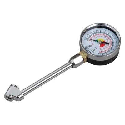 AmazonFeatures:Dial type pressure gauge with twin connector, reading up to 15bar (220psi) Metal body, long reach connector and high range scale Compatible with both cars and commercial vehicles Specifications:Model No: TSTPG34Scale: 0-15bar(0-220psi)Arm Length: 120mmHeight: 341Width: 86Length: 31