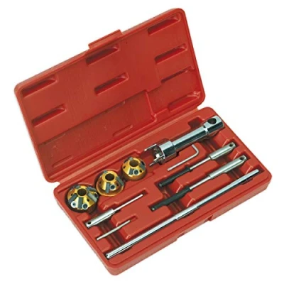 ManoManoGeneral description Sealey Valve Seat Cutter Set 10pc is designed for re-cutting inlet and exhaust valve seats, ensuring they are concentric to the valve guides. This set features high-quality tungsten carbide cutting blades, expandable pilots, and double-end cutters, enhancing its versatility for various applications. It is conveniently supplied in a storage case. Technical specifications Cutter Sizes: Ø28-37mm; 30º, 45º, 75º, Ø37-44mm; 75º, Ø37-46mm; 45º, 60º Model No.: VS1823 Nett Weight: 1.15kg Other information